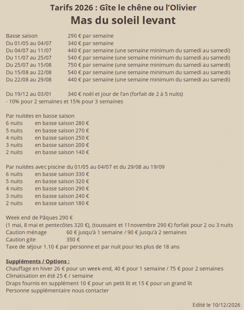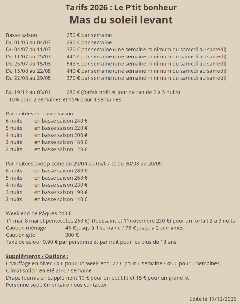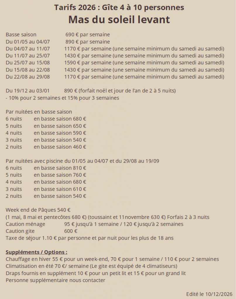 Disponibilités pour le Mas du soleil levant